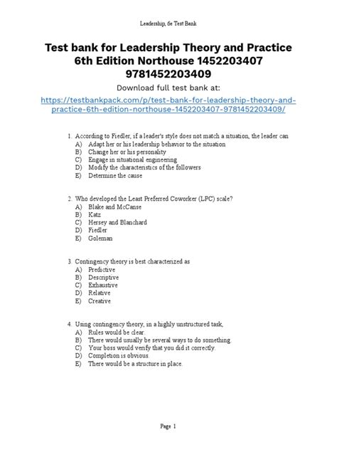 Download LEADERSHIP THEORY AND PRACTICE 6TH EDITION DOWNLOAD Doc